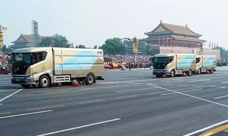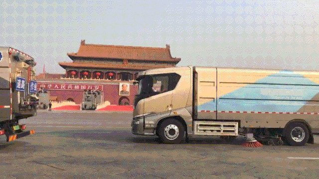 10月1日,庆祝中华人民共和国成立70周年盛典在北京天安门广场隆重举行。早上8点50分,一支由纯电动洗扫车组成的方阵整齐行驶到长安街,对方阵检阅路面进行清洗,为盛典提供环境清洁服务。这批车辆中,有11辆是来自比亚迪与北京环卫集团联合打造的全新T8纯电动洗扫车,在70周年盛典上首次全球亮相,为盛典路面清扫工作提供坚实保障,并向世界展示中国顶尖的纯电动重卡技术,以优异表现献礼新中国成立70周年!