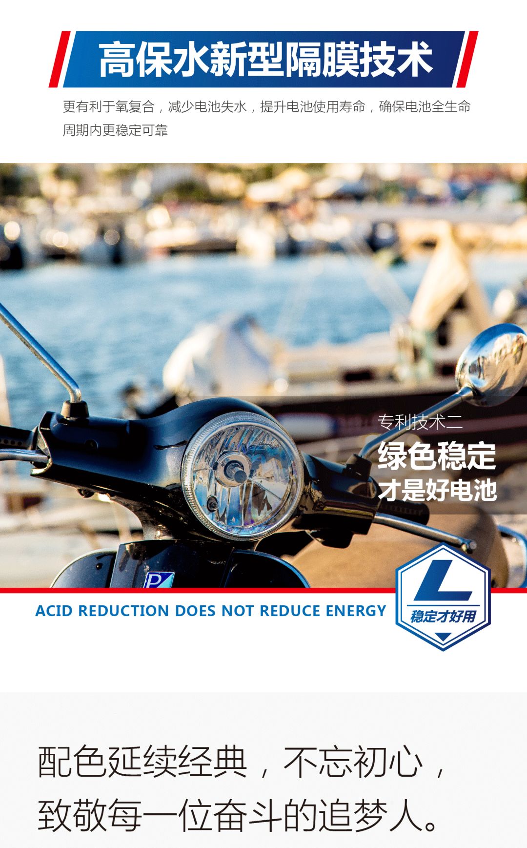 虽然已经占据行业科技制高点,但天能从未停止探索的脚步,伴随着科技日新月异的发展,天能将以更加严谨的态度不断突破技术难关。2019年5月,天能电池再次走在行业科技前沿,发布尖端高新力作——天能L系列电池,满足广大消费者对耐用型动力电池的渴望与需求!中国电池高端制造科技再创新巅峰!