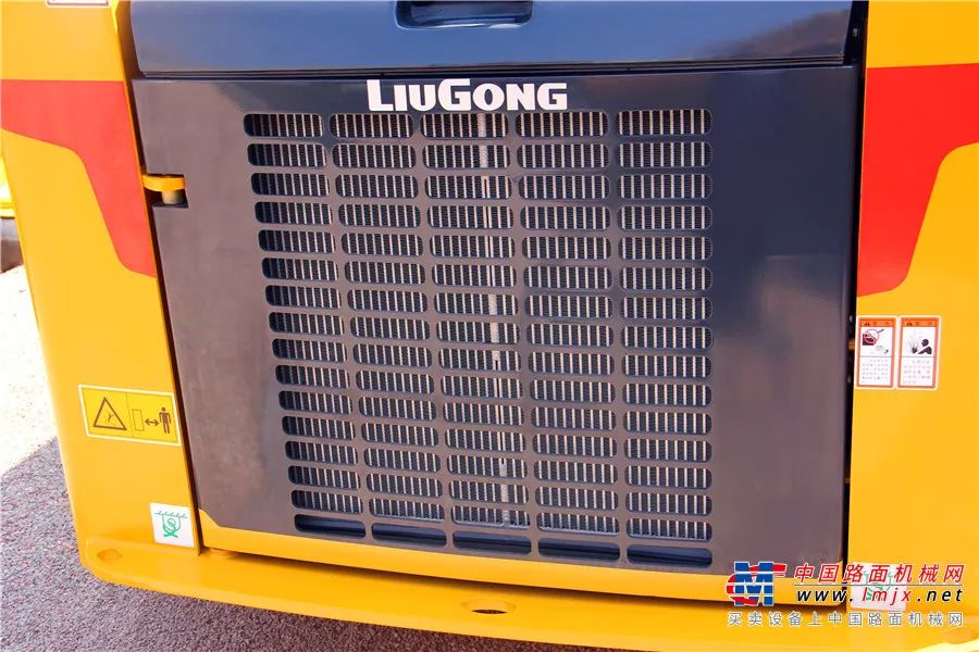 上掀式机罩和外旋式后罩门,轻松快速地检查发动机、液压油箱、柴油箱及散热器;