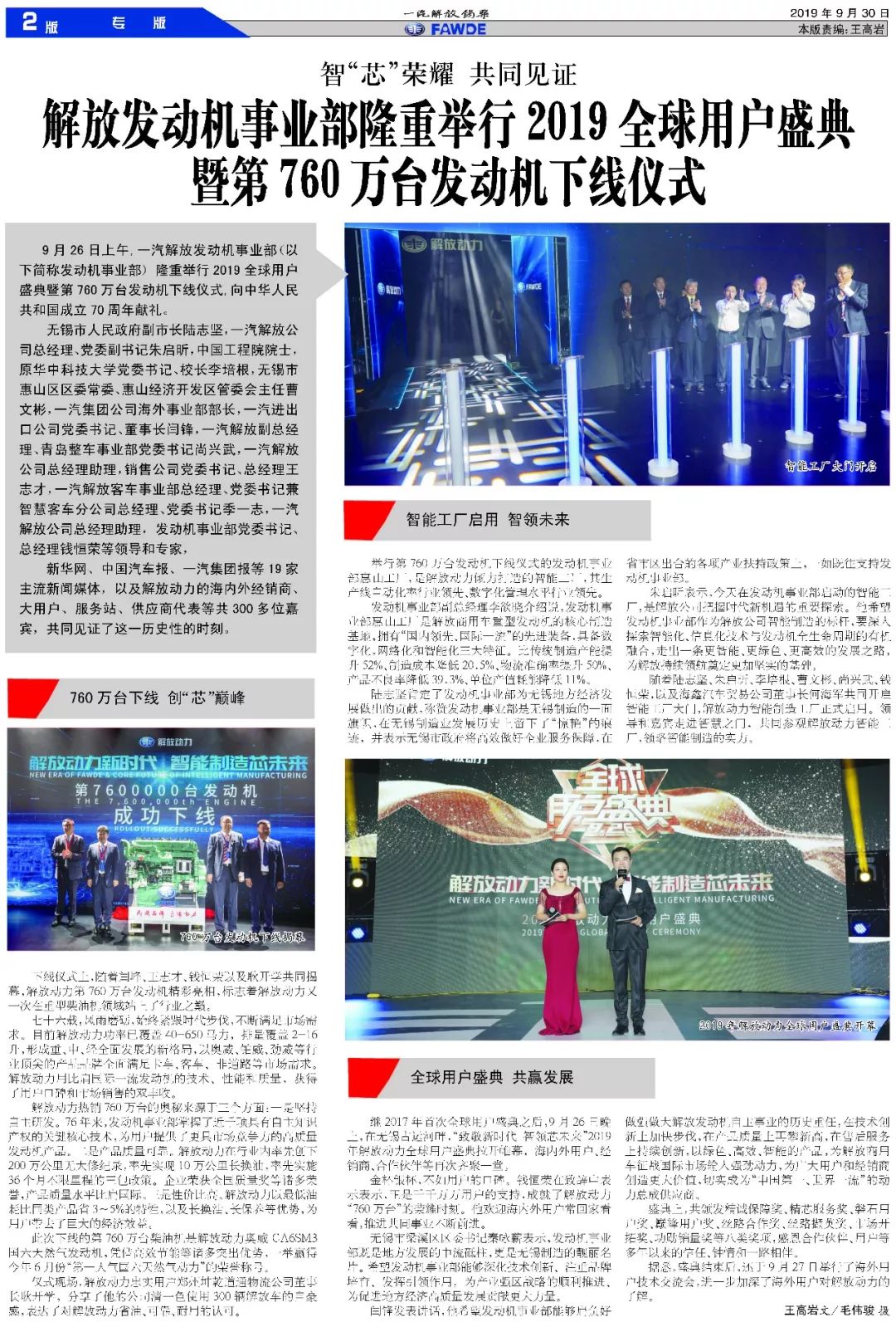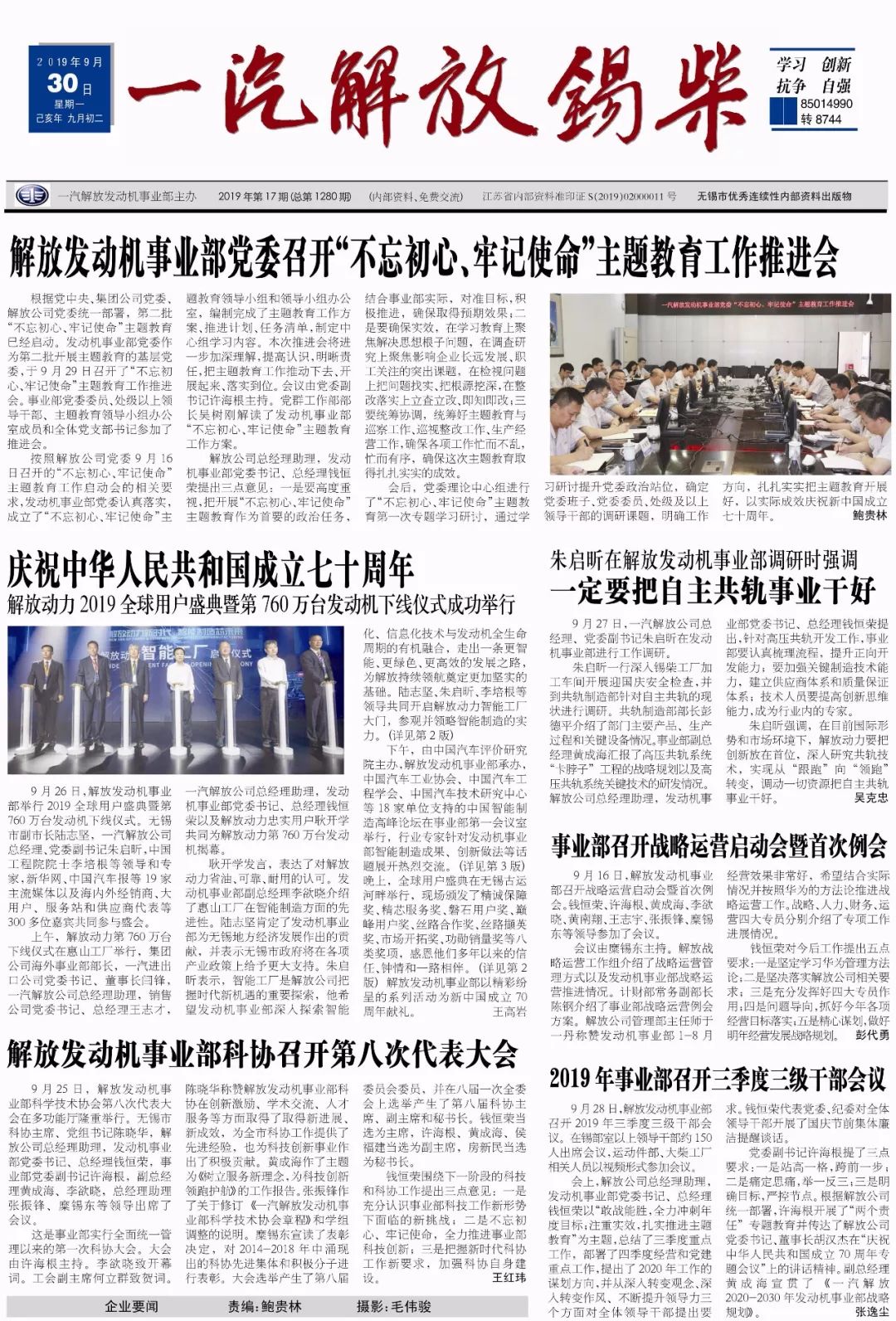 2011年锡柴进入第四次创业的新征程,提出了建设具有核心竞争力的“自主锡柴、实力锡柴、和谐锡柴”的奋斗目标。工厂正以“争第一、创新业、担责任”为核心理念,开拓创新,昂扬奋进,打造“民族品牌,高端动力”,为推动一汽自主事业,促进汽车工业又好又快发展,实现人·车·社会和谐发展做出新的贡献。