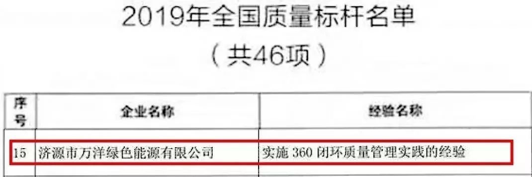 近日,国家工信部公布2019年全国质量标杆典型经验遴选结果的通知。经过质量管理专家组严格评审,天能万洋公司以“实施360闭环质量管理实践的经验”从全国知名企业中脱颖而出,获得“2019年全国质量标杆”荣誉称号,同时入围榜单的还有联想、上汽等46家企业。