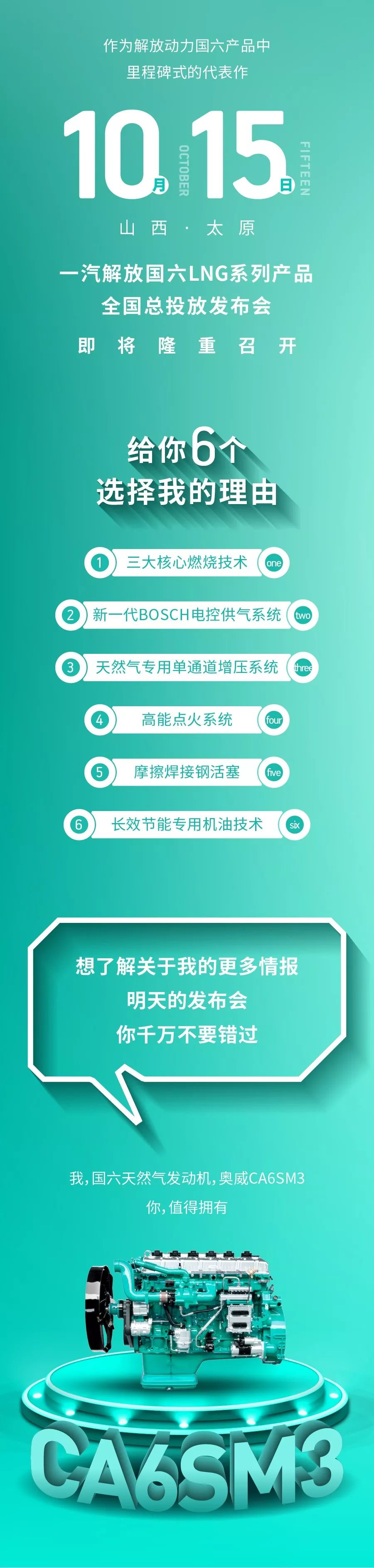 解放发动机事业部 国六上新了丨奥威CA6SM3天然气发动机,明日震撼登场