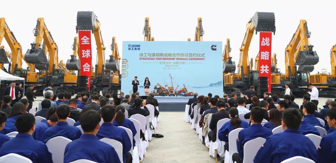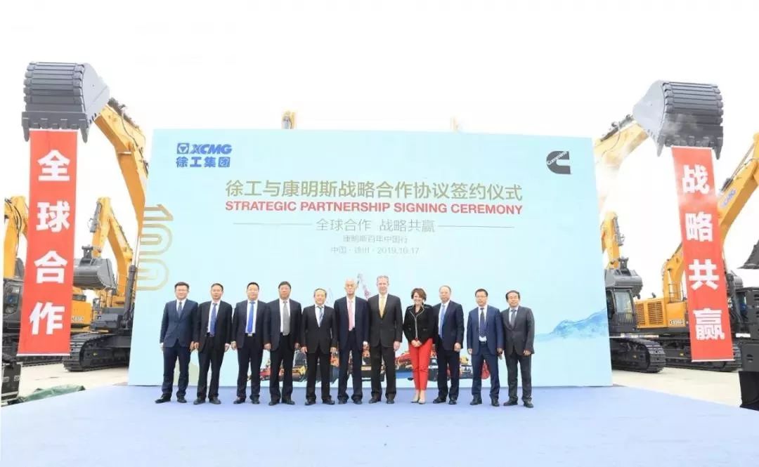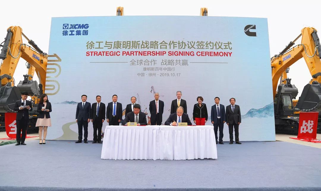 10月17日,值康明斯百年庆典,徐工与康明斯在徐州签署了战略合作协议。双方承诺将在全产品线、全价值链和全球范围内深化合作,开辟新应用、新市场,共享优势资源,建设并不断完善全球研发、制造和服务体系,共同打造具有创新性、可持续性的全价值链高端平台。