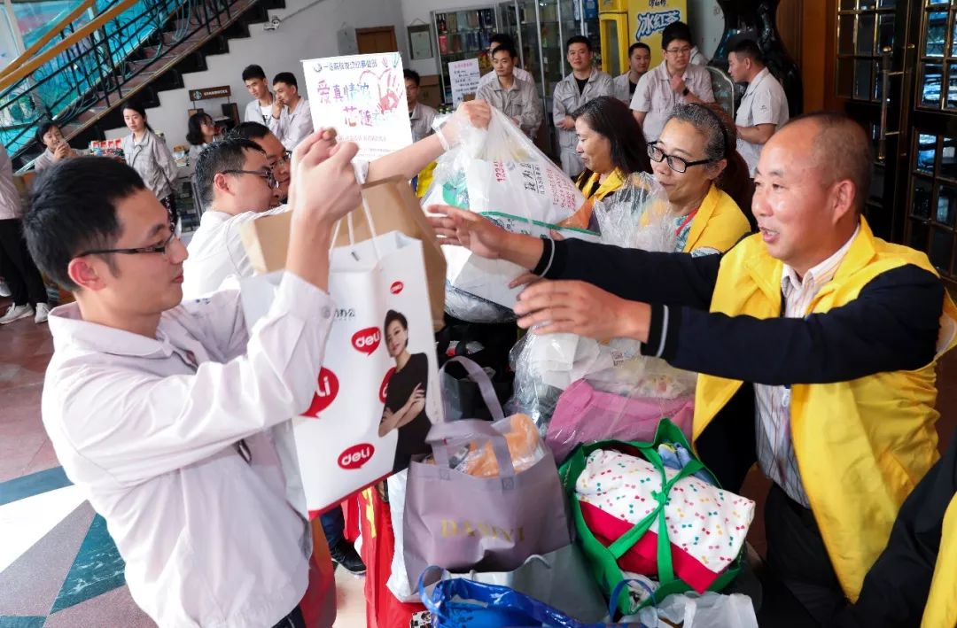 当日下午,捐赠物资的交接仪式在事业部餐饮中心门口举行。事业部30多名青年党员和无锡市星光义工协会的志愿者们一起,将从各部门募集的衣物、书包、图书等爱心物资分拣、整理、打包,然后一包一包地搬到运输车辆上。
