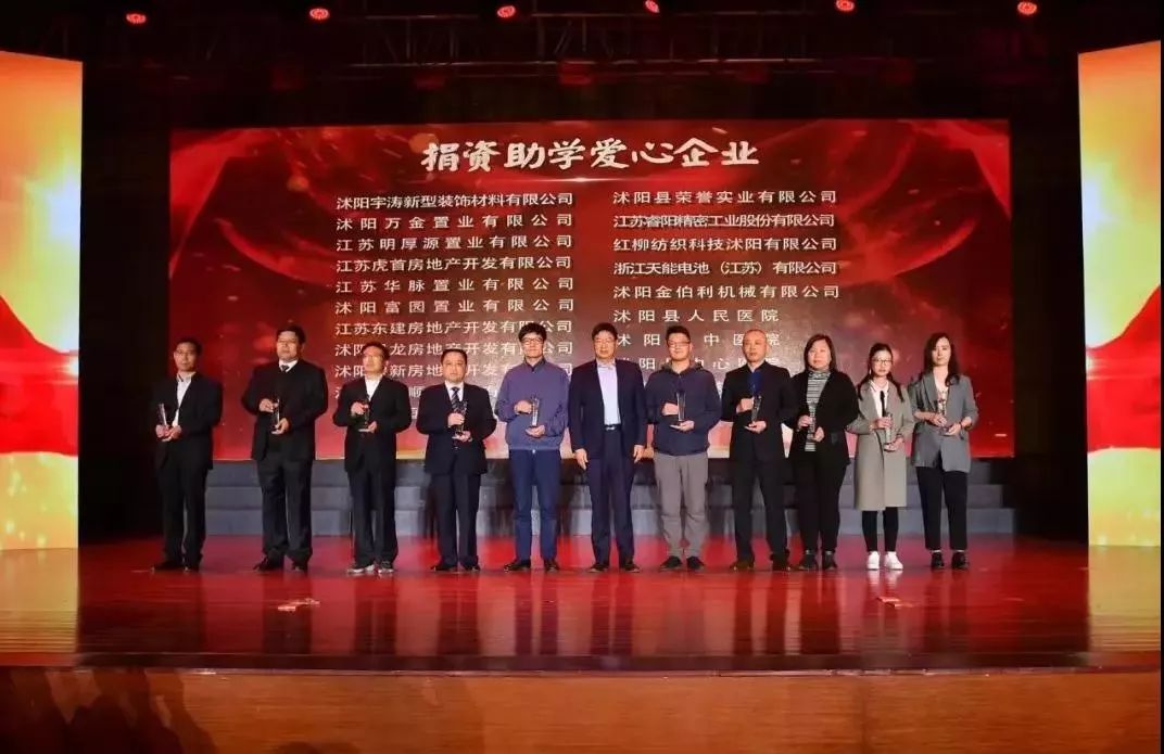 10月16日,在第六个“全国扶贫日”·沭阳县“脱贫攻坚奖”颁奖典礼上,表彰了一批典型的先进集体和个人,浙江天能电池(江苏)有限公司获得“捐资助学爱心企业"。这次活动,涌现了许多像天能一样的优秀企业,在企业发展的同时以自身实际行动反哺社会,对扎实打好精准脱贫攻坚战具有重要意义。