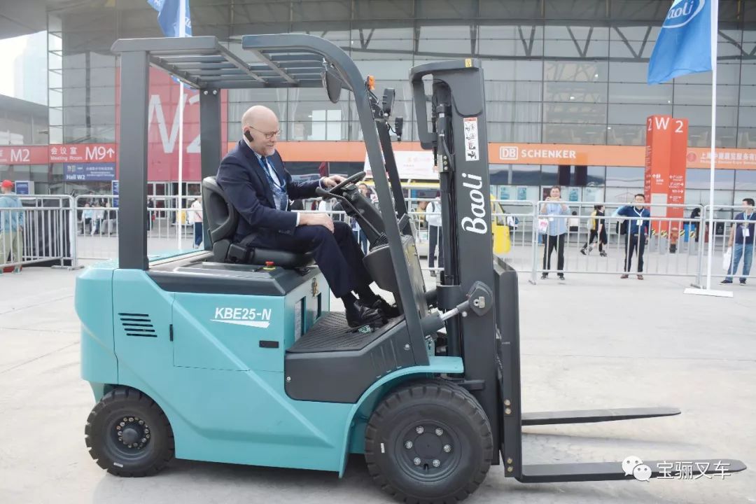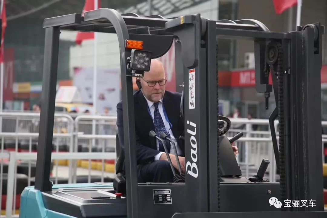 凯傲集团CEO Gordon Riske先生也现身本次CeMAT展会现场,了解凯傲集团此次的展出盛况。并在宝骊室外展示区试驾了宝骊新款2.5T锂电车及蓄电池叉车,宝骊叉车稳定、高效、舒适的优异品质,安全、卓越的操控性能得到了Gordon Riske先生极大的肯定与赞赏。