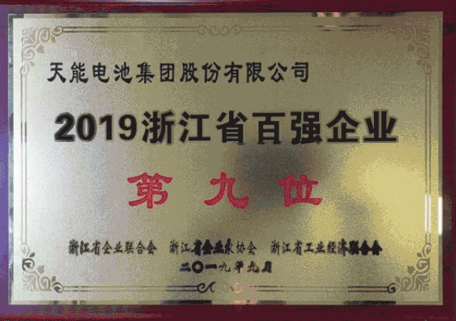 入选奖项主要有天能电池集团股份有限公司上榜的浙江省百强企业第9位、浙江省制造业百强企业第5位、浙江省成长性最快企业第52位;智造式强动力型电池被评为“2019年浙江省优秀工业产品”;天能集团首席信息官宋锐授予为“第一届浙江省优秀首席信息官”等殊荣。
