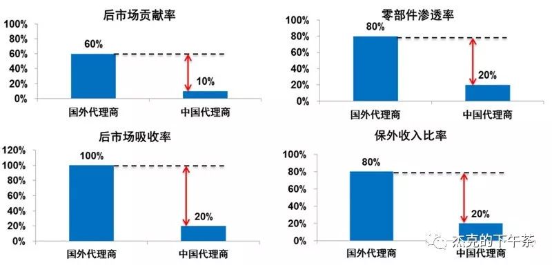 上表列出了笔者对代理商和背包客/配件店竞争力的比较,与很多人的认知不同,代理商不仅在价格上处于劣势,在后市场综合竞争力上也不如背包客/配件店,这就是大量客户流失的原因。“便宜没好货,好货不便宜”定律在后市场失效之后,大量客户的流失到背包客和配件店也就不足为奇了。