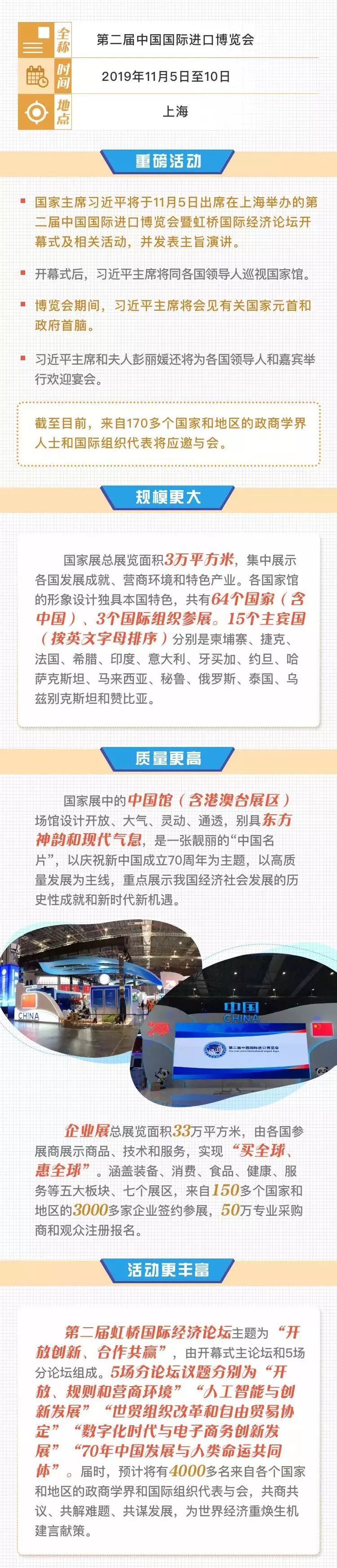2019年11月5日,第二届中国国际进口博览会在上海国家会展中心举行开幕式,习近平主席出席开幕式并发表主旨演讲。