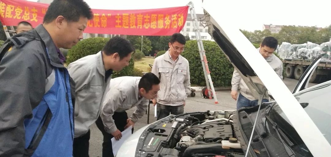 11月7日,装配党总支第二党支部15名党员在欣业门广场,开展了一次冬季车辆日常检查、行车安全注意事项宣贯和服务活动。
