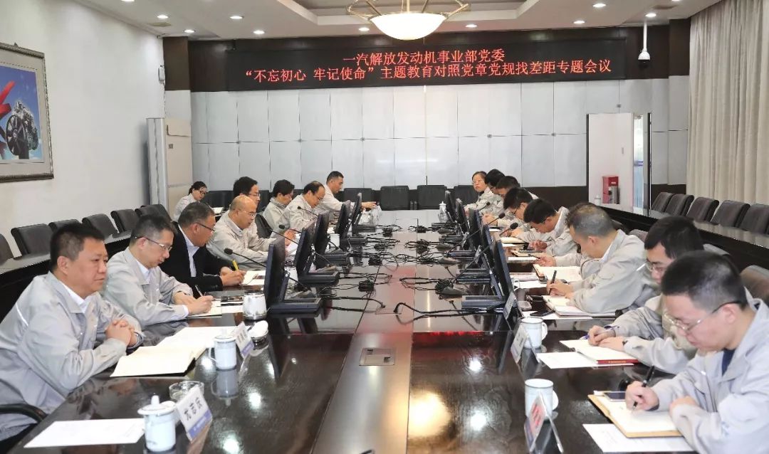 按照“不忘初心、牢记使命”主题教育工作安排,11月11日,解放发动机事业部党委在第一会议室召开了“不忘初心、牢记使命”主题教育对照党章党规找差距专题会议。事业部党委书记、总经理钱恒荣,党委副书记许海根,党委委员、副总经理黄成海、李欲晓,副总经理黄南翔,前瞻技术研究院副院长宋国民以及主题教育领导小组办公室成员出席了会议。事业部副总经理侯福建,解放主题教育第二指导组组长杨术军部长、李日升主任、路智程专员视频参会。许海根主持会议。