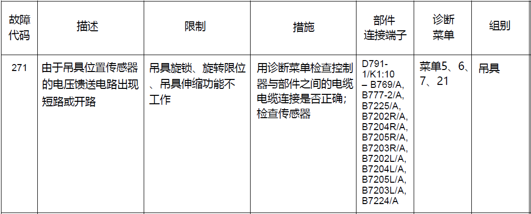 卡尔玛维修工程师首先对显示屏出现的故障代码271进行查询: