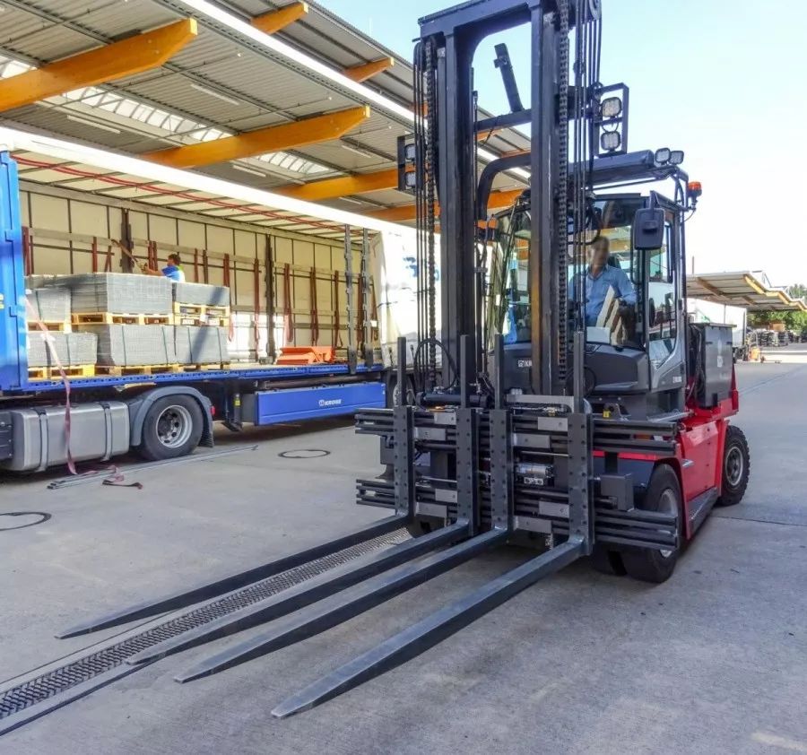 KAUP多托盘叉可以从货车的侧面叉取前后两排托盘,KAUP提供最科学全面的方案以满足同时搬运多托盘作业的需求。