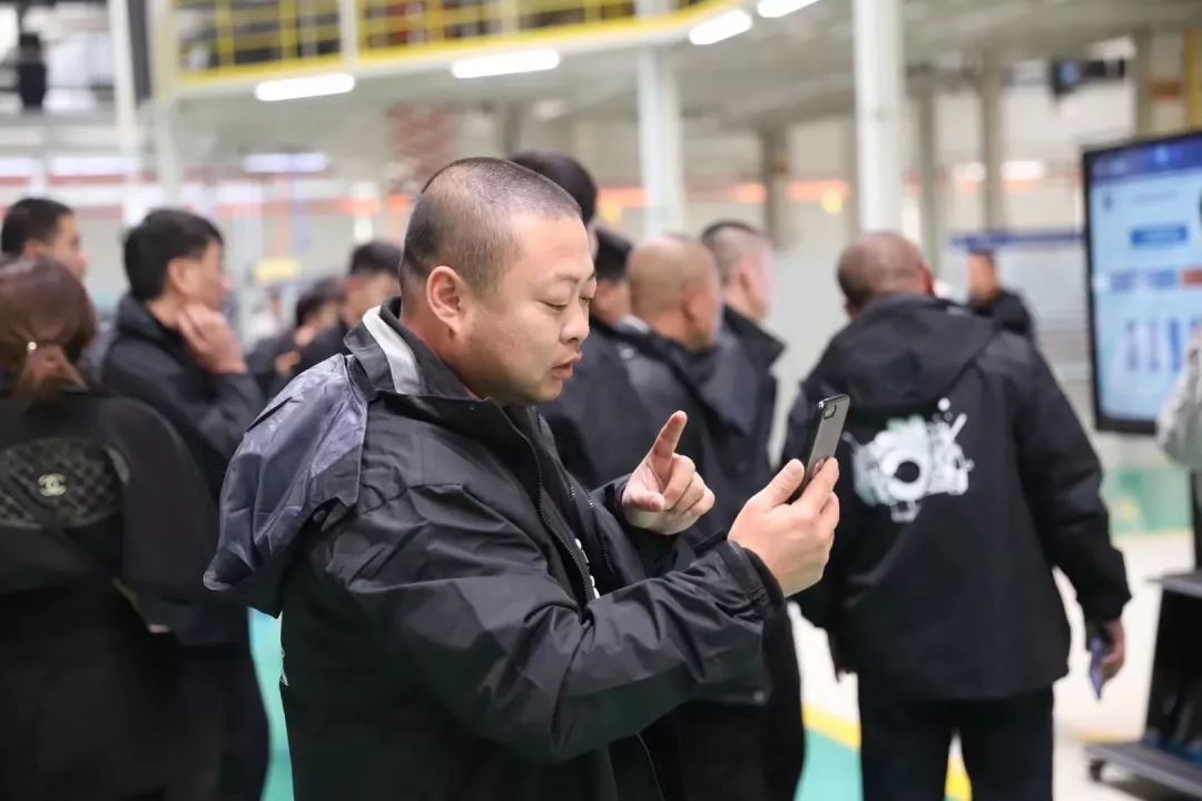 一进入车间,卡友纷纷拿起手机,记录下发动机智能化的生产过程。