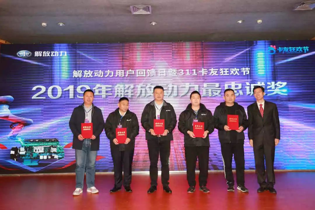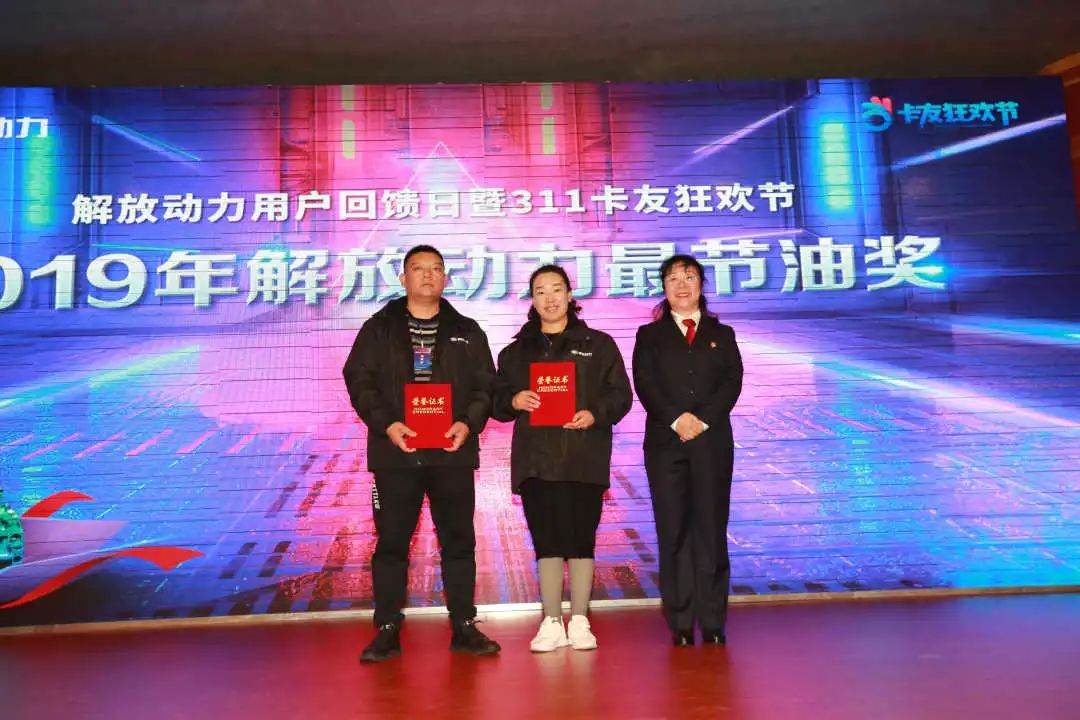 现场为获得2019年“解放动力之最”的“最忠诚”“最可靠”“最节油”的11名用户颁奖。