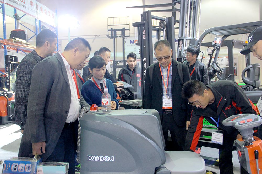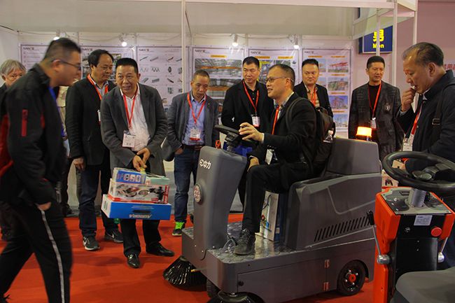清洁小能手,干净地面,扫地不费力,轻松应对大面积作业场地,有我们的扫地机J1100, 现场客户驾驶着J1100在场地有限的展会通道上轻松自如的直行、转弯,扫地机优越的性能引得客户频频称赞。