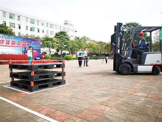 江门日报讯 (文/图 记者/林育辉) 11月20日,2019年江门市叉车司机操作技能竞赛在台山市敬修职业技术学校举行,来自三区四市7支代表队的45名叉车司机参加比赛,选手们大展身手,上演精彩的叉车技能大比拼,并顺利产生一、二、三等奖等奖项。