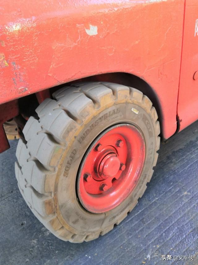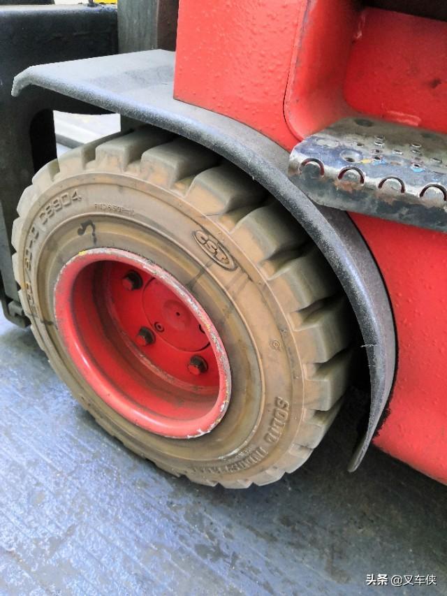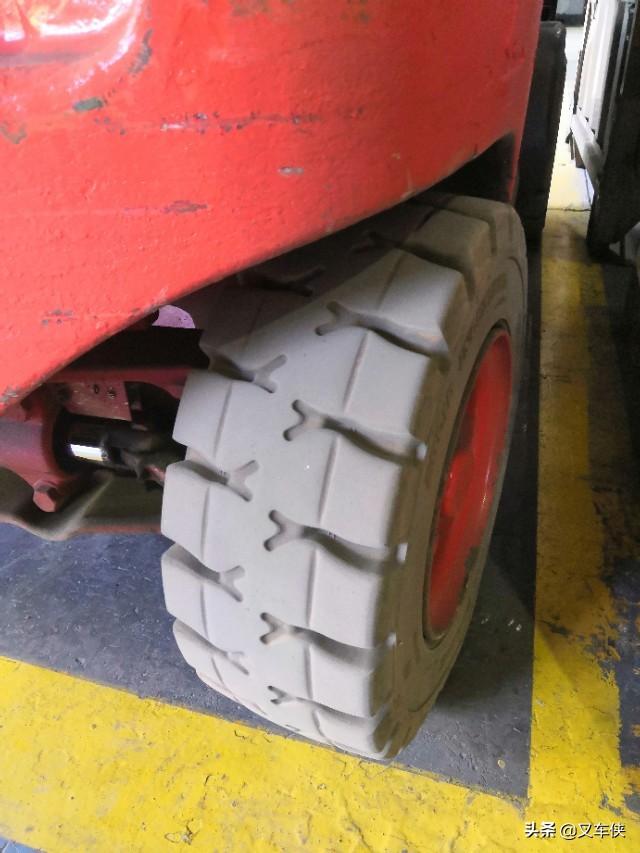 轮胎是叉车的重要组成部件,对叉车的安全性能起着至关重要的作用。每班使用前都要进行点检,叉车橡胶厚度小于2.5厘米,或有破损都需要及时更换。