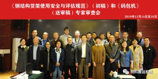 2019年11月14日至16日,物流仓储设备标准化技术委员会在昆明市组织召开了《钢结构货架使用安全与评估规范》(初稿)和《码包机》(送审稿)专家审查会。出席此次会议的行业专家和秘书处人员共计21名代表。
