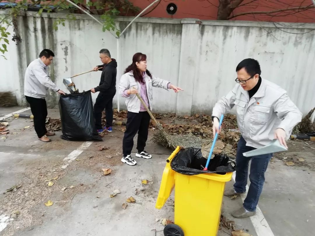 11月23日,营销党总支组织20余名营销党员清扫南面停车场落叶。