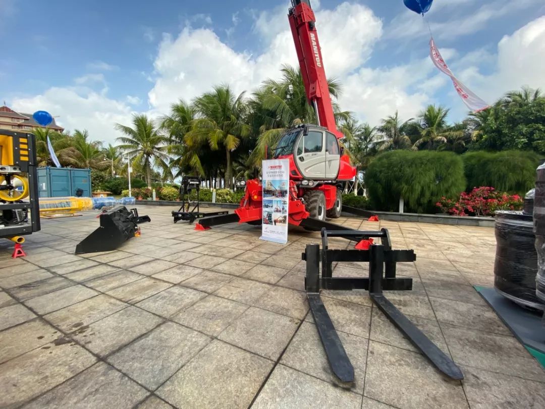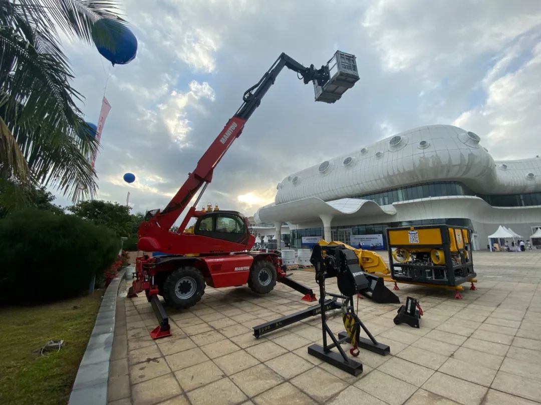 为了支持我国深海能源开发及建设,曼尼通中国调运了一台MRT-X2150旋转式伸缩臂叉装车参加了此次会议。该叉装车配置一系列快速更换的方案化属具来满足深海能源建设的需求,包含货叉、单钩吊臂、双钩吊臂、铲斗、液压卷扬机、高空作业平台等,可在物流基地、建设工地、后勤物资储备库等作业场所较长时间连续作业。无需购买其它机械设备,只需在叉装车上增加几个可用附件,就可以提升叉装车的生产能力、灵活性及工作效率。