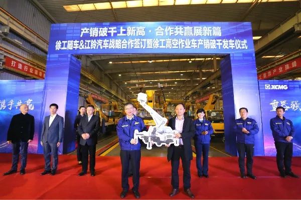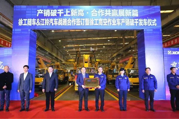 12月9日,徐工随车&江铃汽车战略合作签订暨徐工高空作业车2019产销破千发车仪式在徐工随车厂区隆重举行,徐工随车、江铃汽车股份有限公司双方主要领导、上海科达公司代表及徐工随车百余名员工共同见证了这一荣耀时刻。