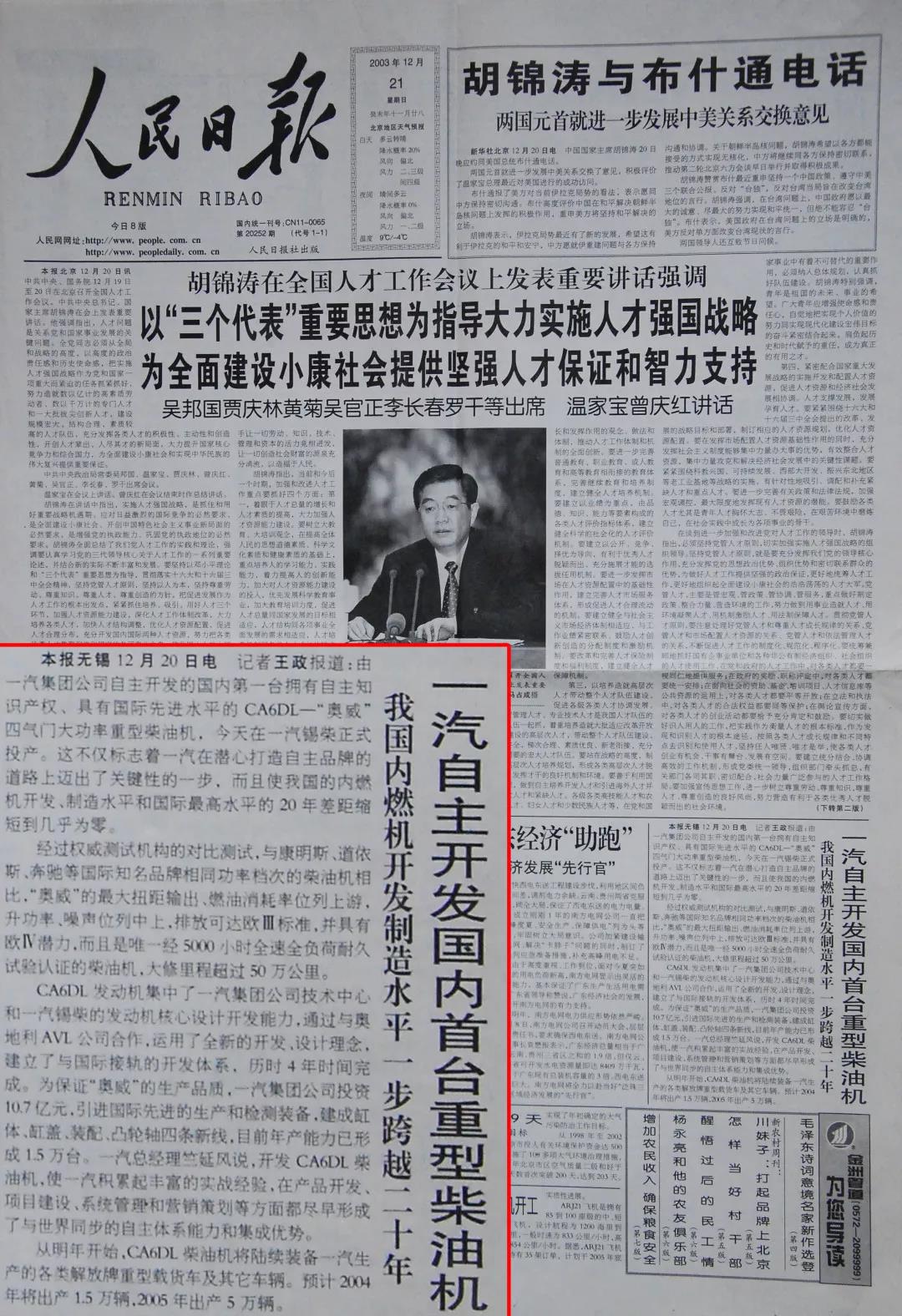 2003年,中国第一台自主研发的发动机