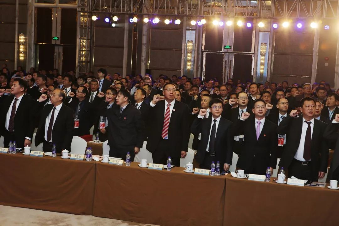 ▲▲在许海根带领下,全体与会人员共同起立,高声诵读解放动力品牌宣言
