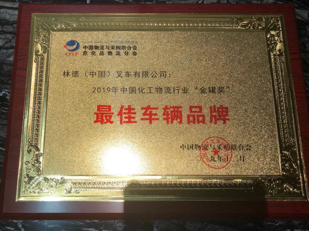 会议同期,中国物流与采购联合会为林德颁发了2019年中国化工物流行业“金罐奖”-最佳车辆品牌,肯定林德的技术研发以及在化工行业的努力与贡献。