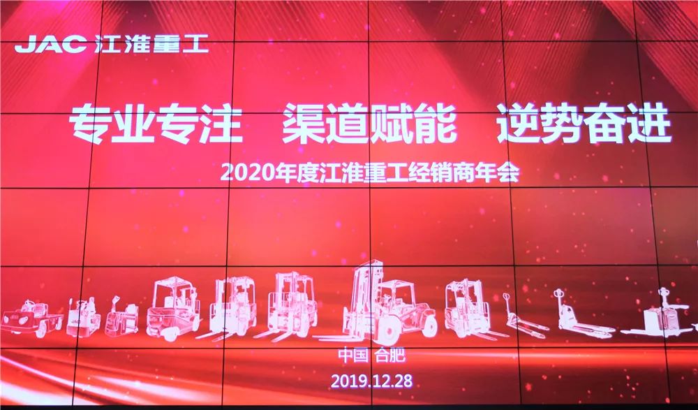 岁末隆冬,腊梅迎客。2019年12月27-29日,以“专业专注 渠道赋能 逆势奋进”为主题的2020年度江淮重工经销商年会在安徽合肥市成功召开。来自全国一百多家经销商代表汇聚一堂,回顾总结2019年,展望谋划2020年,共商发展大计!江淮汽车集团控股公司总裁助理、江淮重工公司董事长王德龙先生、江淮重工公司总经理黄李平先生等公司领导及技术、配件、客服、营销部门负责人出席会议。
