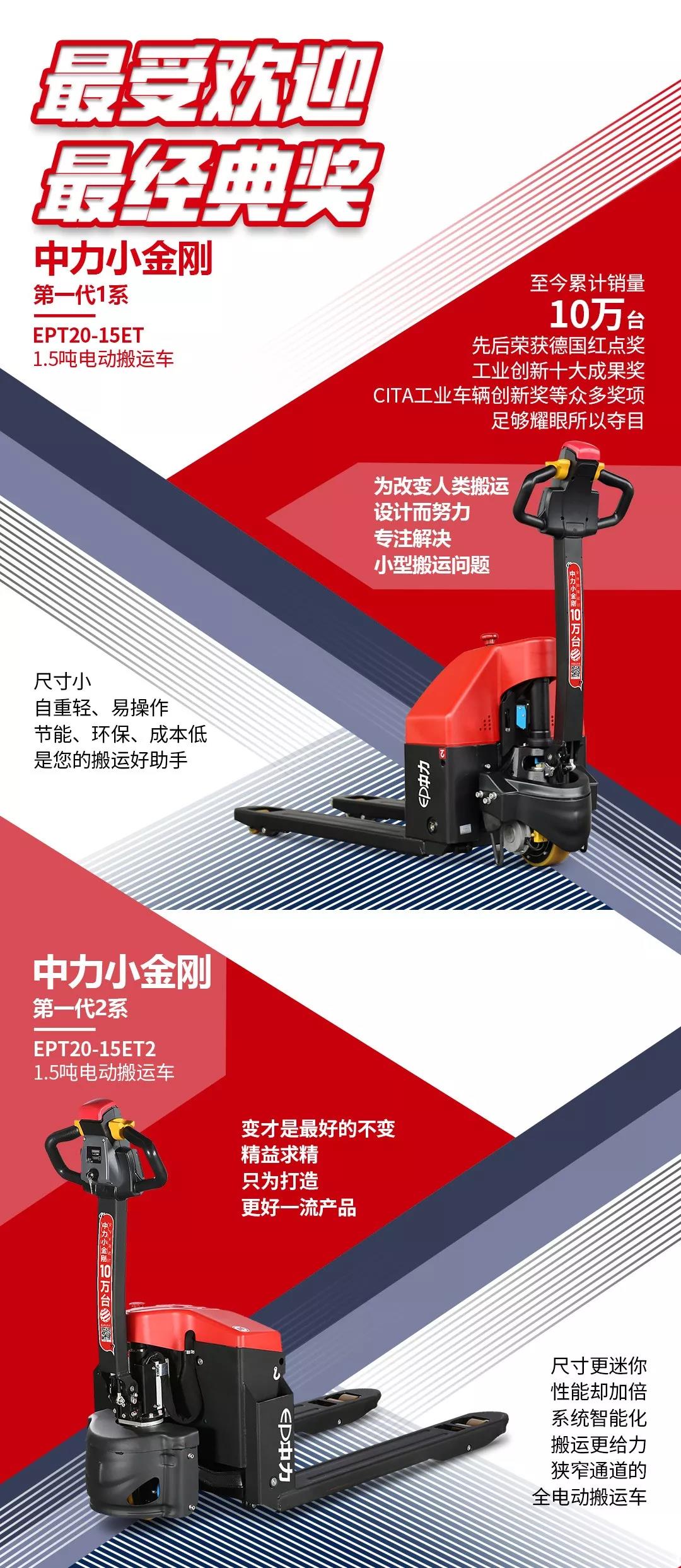 2012年在全球推出小型电动搬运设备—中力小金刚系列,荣获国际设计大奖“德国红点奖”和“IF设计大奖”,自此改变了行业产品史,实现了从手动搬运到电动搬运的裂变,中力也发展到拥有浙江安吉、江苏靖江、杭州富阳、湖北襄阳等超千亩的生产基地。