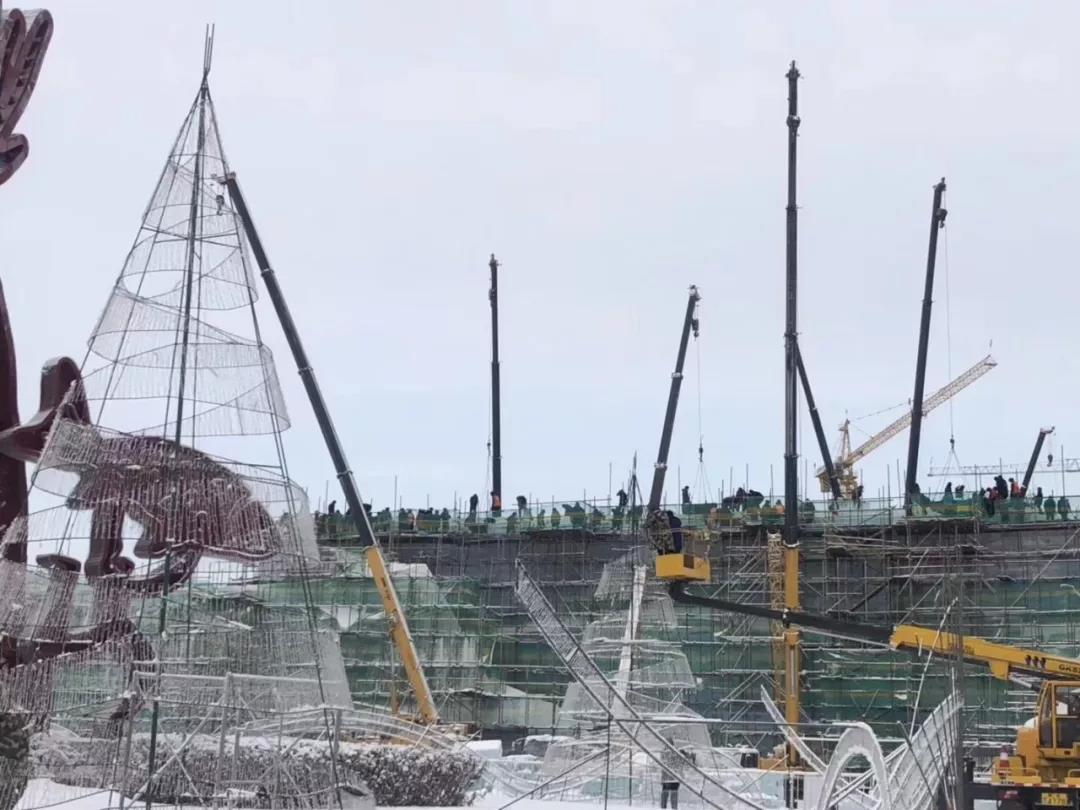 冰雪堆砌的施工现场犹如一个大冰窖,尤其是在这个气温最低的月份,冰雪大世界的建设于车于人都是意志和品质的一场“年末大考”。