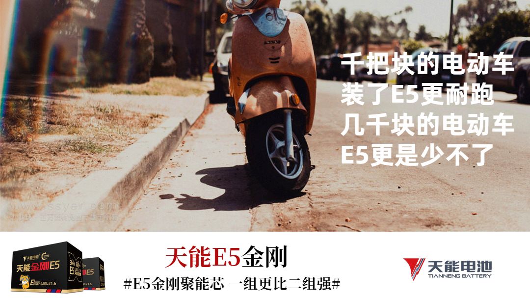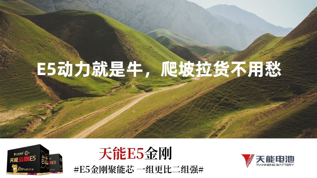 天能E5金刚震撼登场,火热报货中。动力拉满,无视地形,让你的电动车成为2020年最靓的明星。