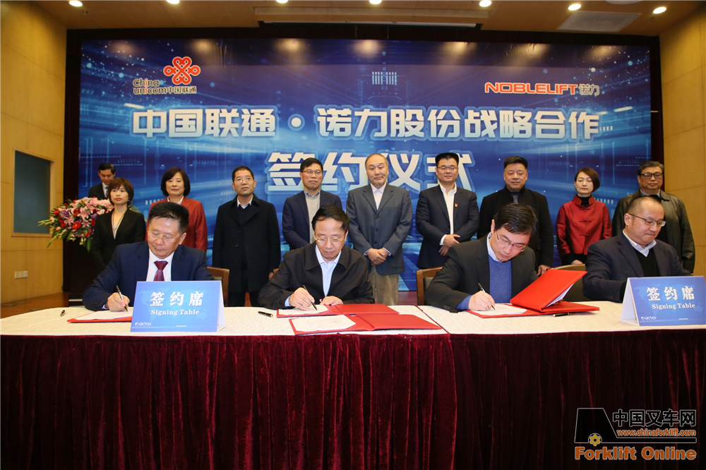 2020年1月10日,诺力股份与中国联通在浙江省长兴县签署战略合作协议。双方将发挥各自领域优势,整合优势资源,聚焦智能物流区域,建立长期稳定、全面共赢的战略合作关系。中国工程机械工业协会工业车辆分会秘书长张洁、诺力智能装备股份有限公司董事长丁毅、总经理毛英、无锡中鼎总经理张科及政府相关领导、中国联通领导和多家媒体代表共同出席并见证了本次签约仪式。