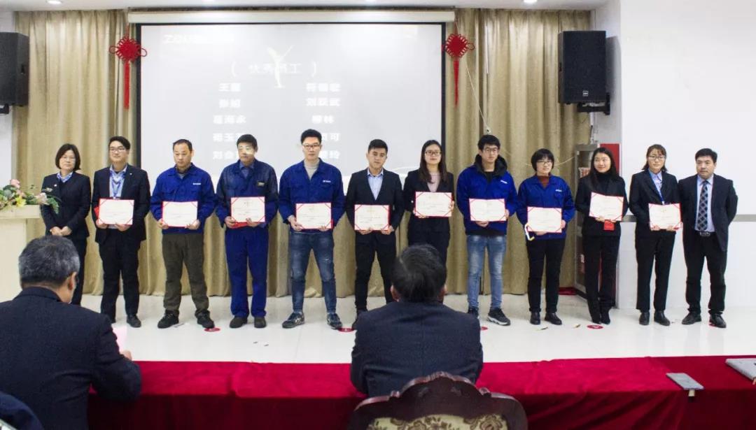 根据会议议程,公司对2019年度先进集体、优秀员工进行了颁奖、表彰。本次表彰共评选出优秀员工10人,先进集体8个,他们在热烈的掌声中接受了祝贺。在过去一年的工作中,他们忠于公司的事业,是可信的人;他们不怕困难、意志坚定,是可敬的人;他不出风头、脚踏实地,是可奖的人;他们尊敬领导、团结同事,是可亲的人……获奖的先进集体和优秀员工珍惜荣誉,再接再厉,全体员工将以他们为榜样,奋起直追,争先创优。