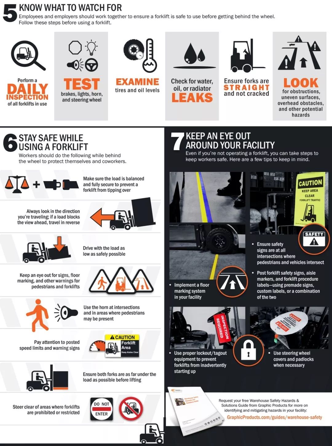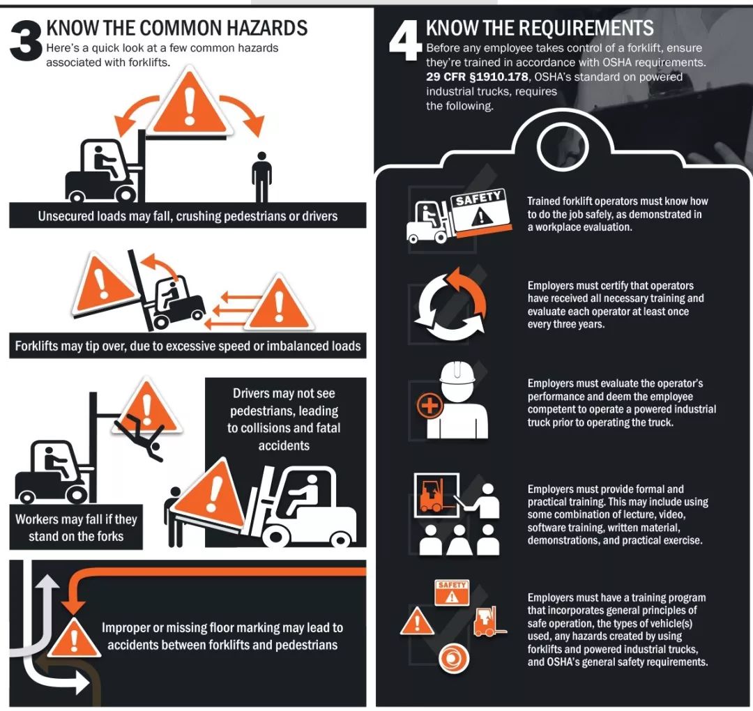来自公开的信息表明,在美国每年大约发生11万起叉车事故。尽管叉车对现代物料搬运带来好处,但也带来了许多危害。因此,以下使用这些提示,确保安全。这些信息图列出了10大有关叉车安全的规则和法规和重要的统计数据,最终目的是消除叉车在搬运过程中的危害。