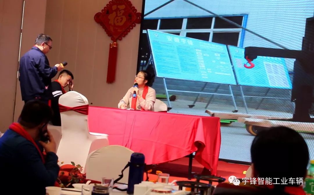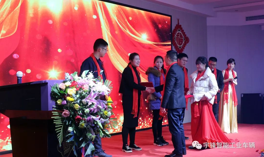 年会伊始,公司董事长项卫锋做精彩致辞:2019年是安徽宇锋战略落地并取得重大突破的一年,不仅完成了国内外销售翻倍的年度业绩增长目标,还凭借我们的研发、设计、制造的全生产链优势和定制化生产能力获得了行业领军企业的战略投资,建立了电动工业车辆、平台级AGV、自动化立体仓库、系统及解决方案等四大核心战略业务。我们身处在这个激昂浩荡的时代,取得的每一点成绩都凝聚了全体员工的心血和汗水。感恩所有宇锋家人们的辛勤付出。2020年是公司充满挑战的一年,“组织的迅速膨胀,激烈的市场竞争,行业技术的快速发展”,在新的形势下宇锋又将如何取得新的优势?又将如何实现可持续发展的目标?主要强调3个方向,一希望大家能够凝聚力量,全力以赴;二需要我们打破部门藩篱、部门本位主义,真正以客户为中心,为客户创造价值。三强化以人为本,广纳英才;2020年是宇锋的战略变革年,品质提升年,组织升级年。我们相信在基于工作“务实专注,生活简单和谐的共同价值观的指引下,在基于“学习创新,诚信团结,责任奉献”的企业精神下,在每一位宇锋家人们兢兢业业,同心同德的努力下,一定会开创宇锋新的辉煌。