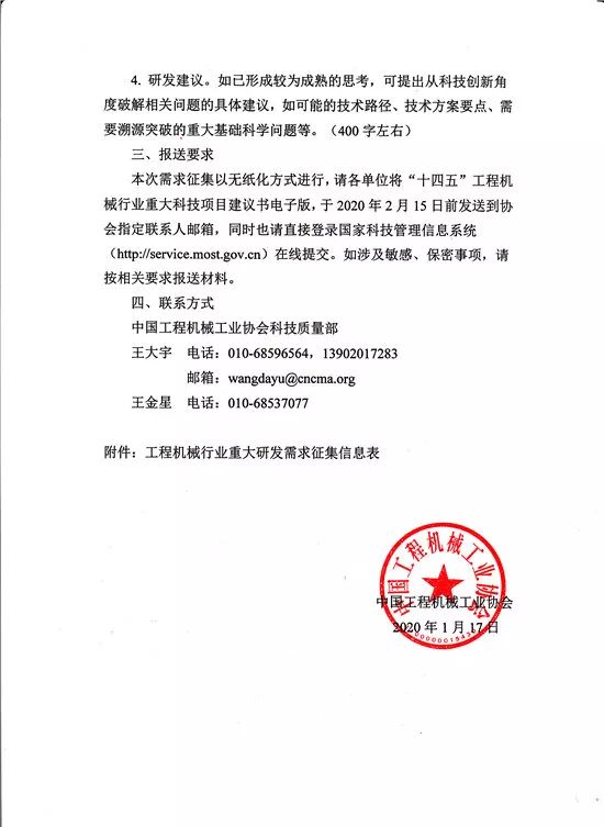 关于开展工程机械行业“十四五”重大研发需求征集工作的通知