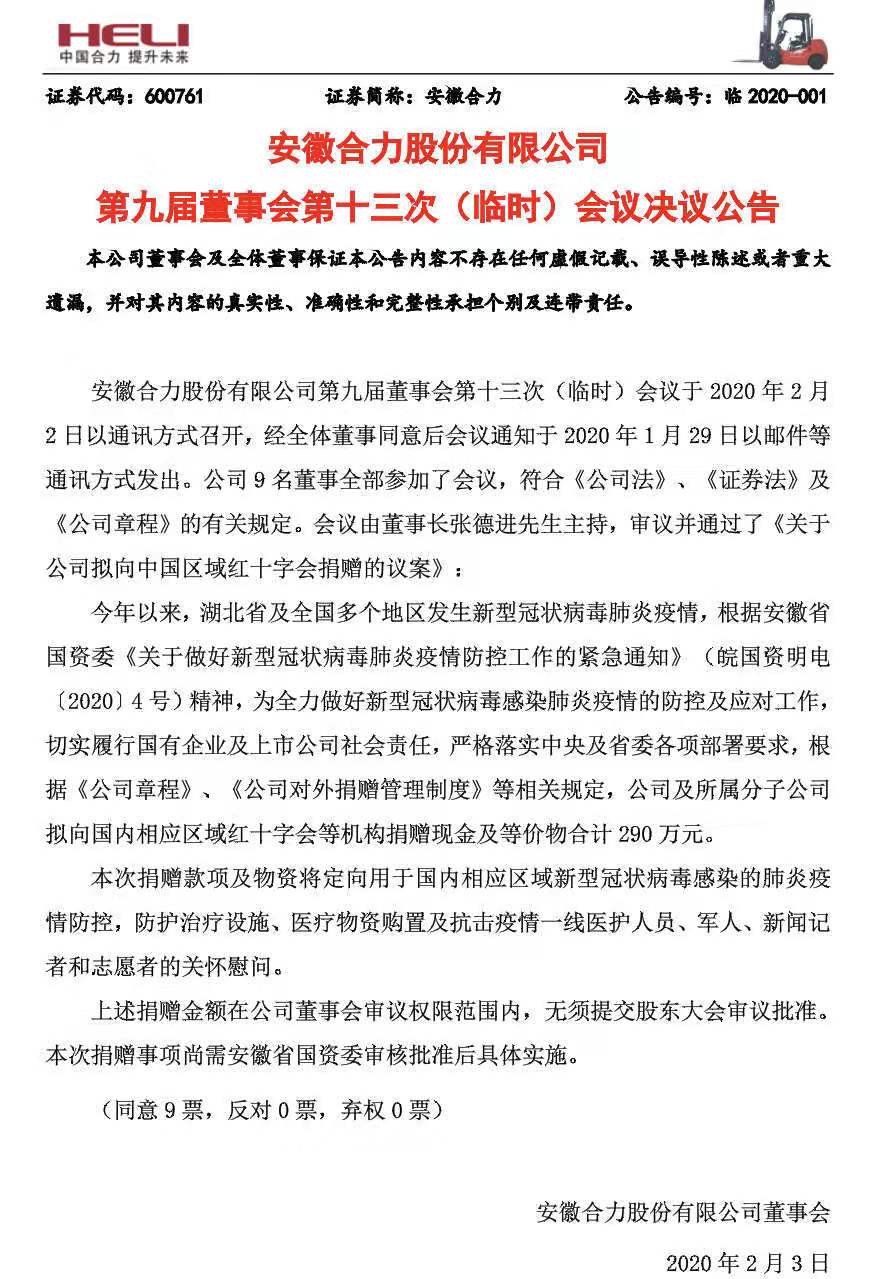 据合力董事会会议决议公告,合力股份有限公司及所属子公司拟向国内相应区域红十字会等机构捐赠现金及等价物合计290万元。