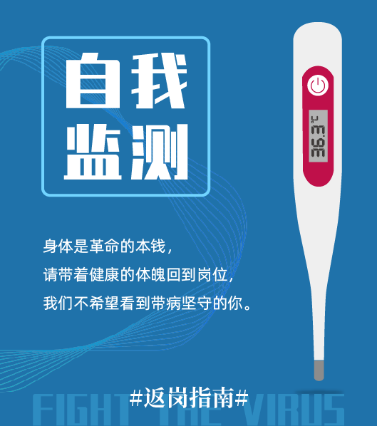 每日自觉进行体温和健康监测,体温37.3℃以下方可上班。