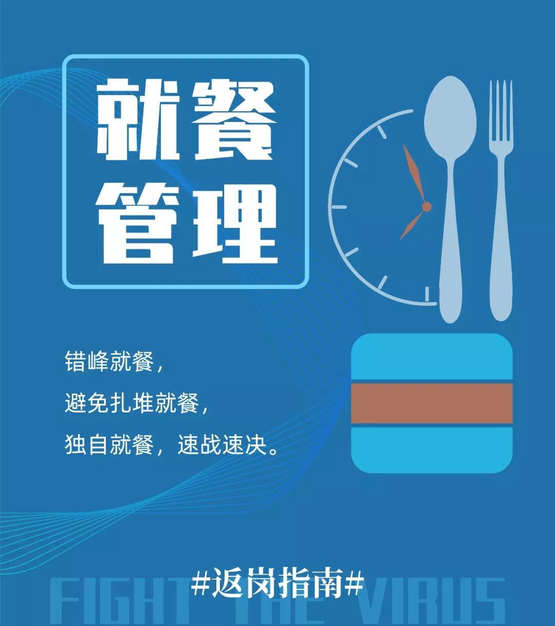 餐前饭后要洗手,用餐尽量不交流,防止产生飞沫。