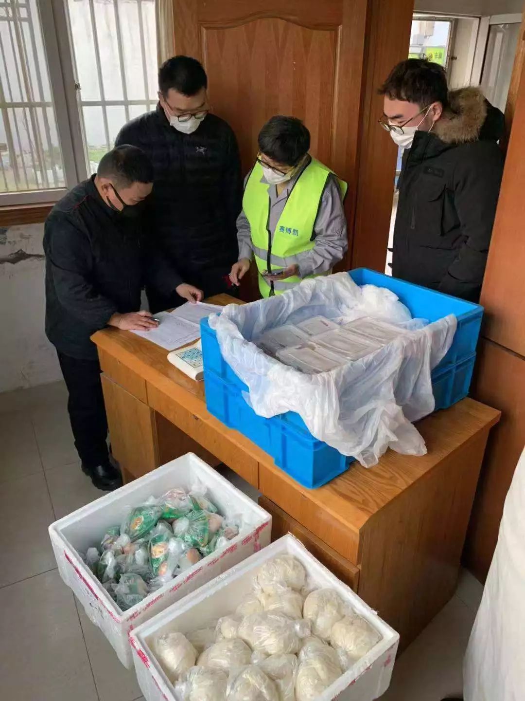 接收发放口罩、消毒液、体温表等物资