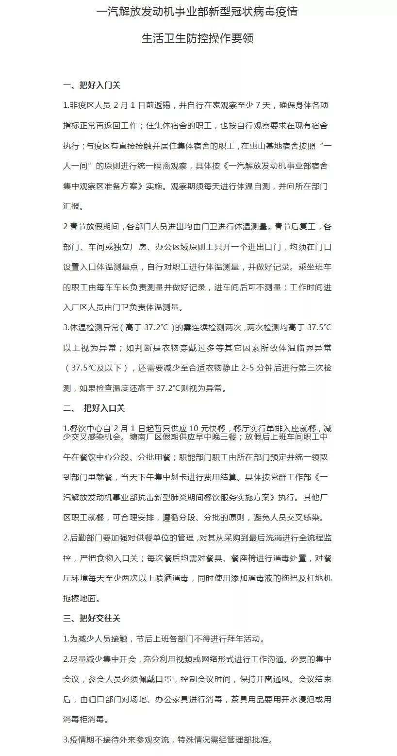 《一汽解放发动机事业部新型冠状病毒疫情生活卫生防控操作要领》