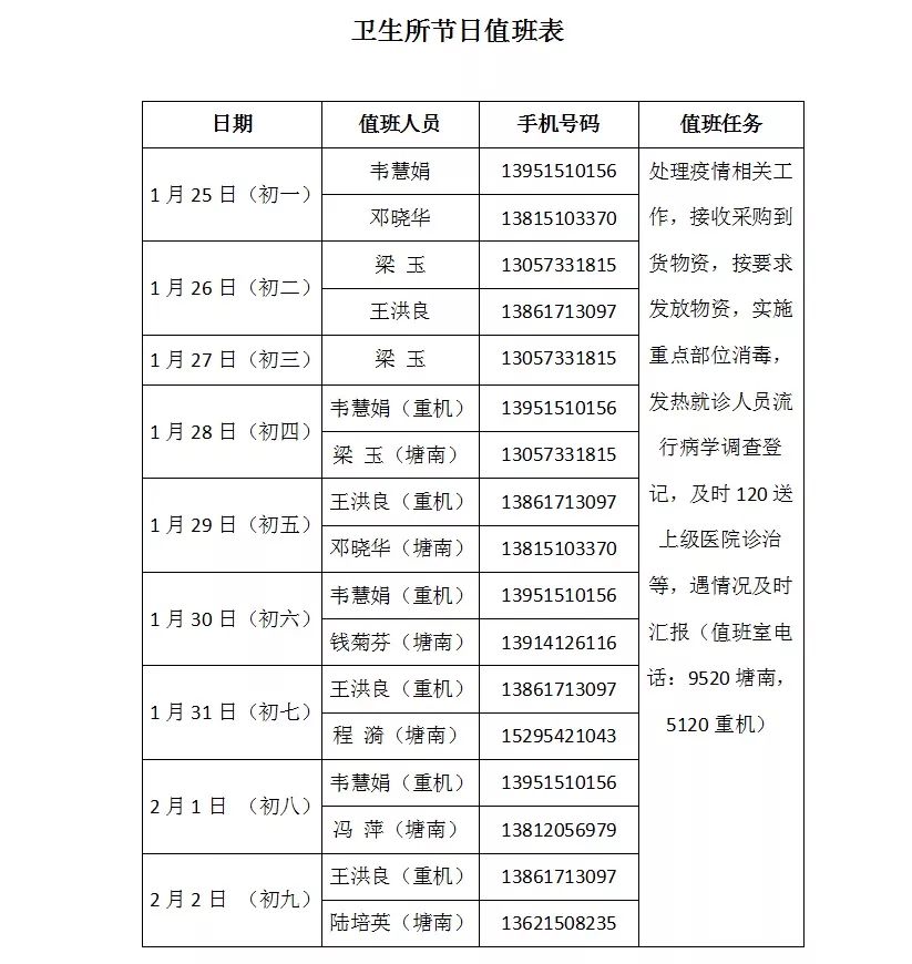 建立卫生所节日值班制度