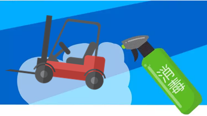 在对叉车进行消毒前,建议先用消毒剂对手进行消毒。随后选择含氟消毒剂、二氧化氯等消毒剂或75%酒精沾湿毛巾,重点擦拭车内座椅、方向盘、操作杆等部位。