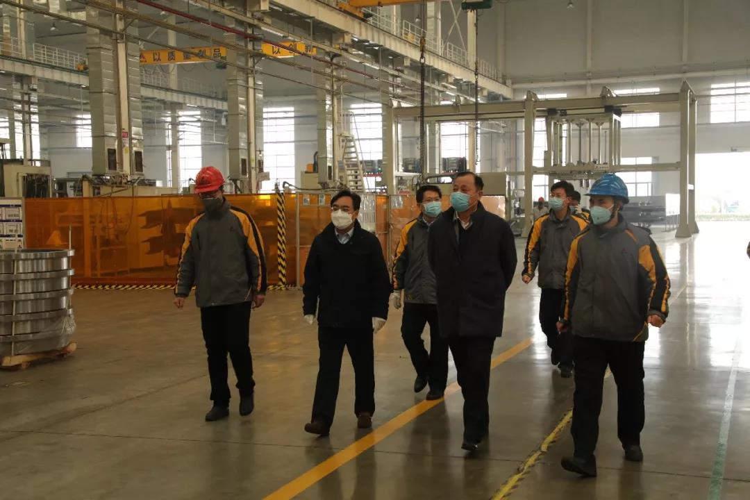 临工集团董事长王志中、山东临工总经理文德刚等领导查看现场复工防疫筹备情况