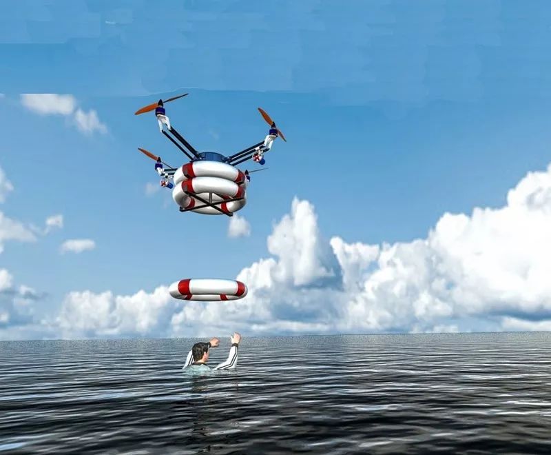 疫情期间,无人机搜寻救援者后空投救生圈等求生物资。