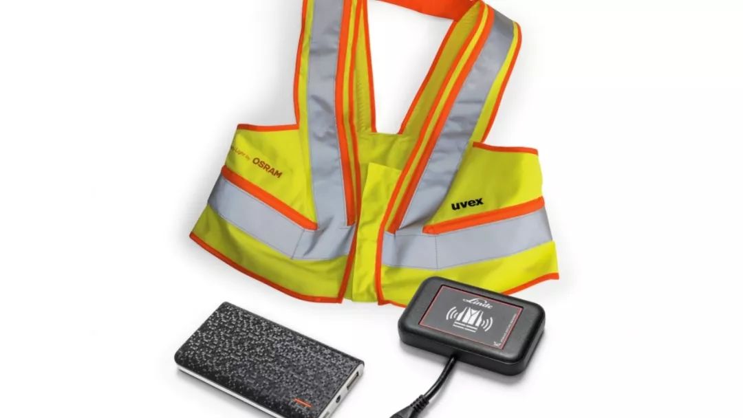 交互式警告背心是林德物料搬运系统创新安全防护系统的最新产品。它的设计旨在提前警告穿戴者,尤其是叉车驾驶员和行人。背心中的智能技术通过光信号,振动和声音警告来警告穿着者潜在的危险,从而最大限度地提高了室内和室外的安全性。这款创新服装因出色的安全解决方案而荣获 Dekra 奖。