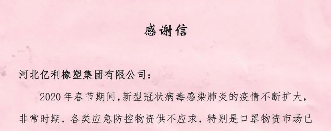 河北亿利橡塑集团有限公司向事业部赠送15000只口罩。