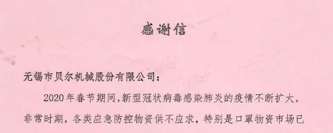 无锡市贝尔机械股份有限公司赠送发动机事业部10000只口罩,在物流不畅情况下,公司负责人亲自将口罩送到事业部。